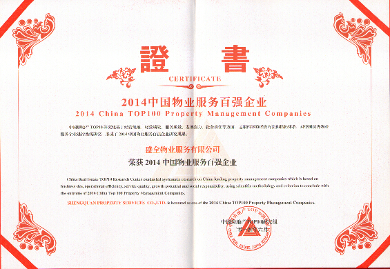 6月18日,2014年中國物業(yè)服務(wù)百強研究成果發(fā)布會暨第七屆中國物業(yè)服務(wù)百強企業(yè)家峰會在北京釣魚臺大酒店舉行。會上發(fā)布了“2014中國物業(yè)服務(wù)百強企業(yè)”榮譽榜單,盛全物業(yè)榮列其中。
