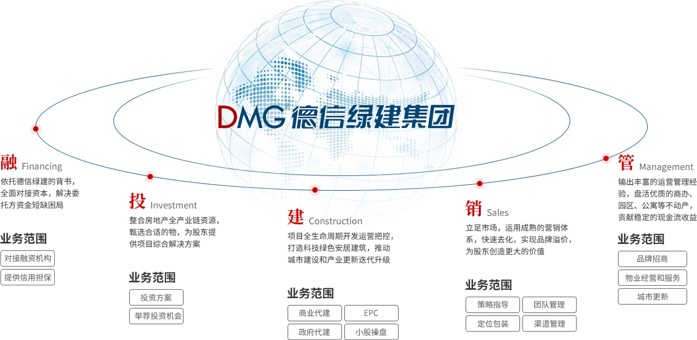 德信綠建集團(tuán)有限公司是德信中國(guó)旗下專注于為全球范圍的合作伙伴提供全產(chǎn)業(yè)鏈咨詢服務(wù)、投融資開(kāi)發(fā)運(yùn)營(yíng)一體化服務(wù)、綠色科技創(chuàng)新服務(wù)的集團(tuán)公司。