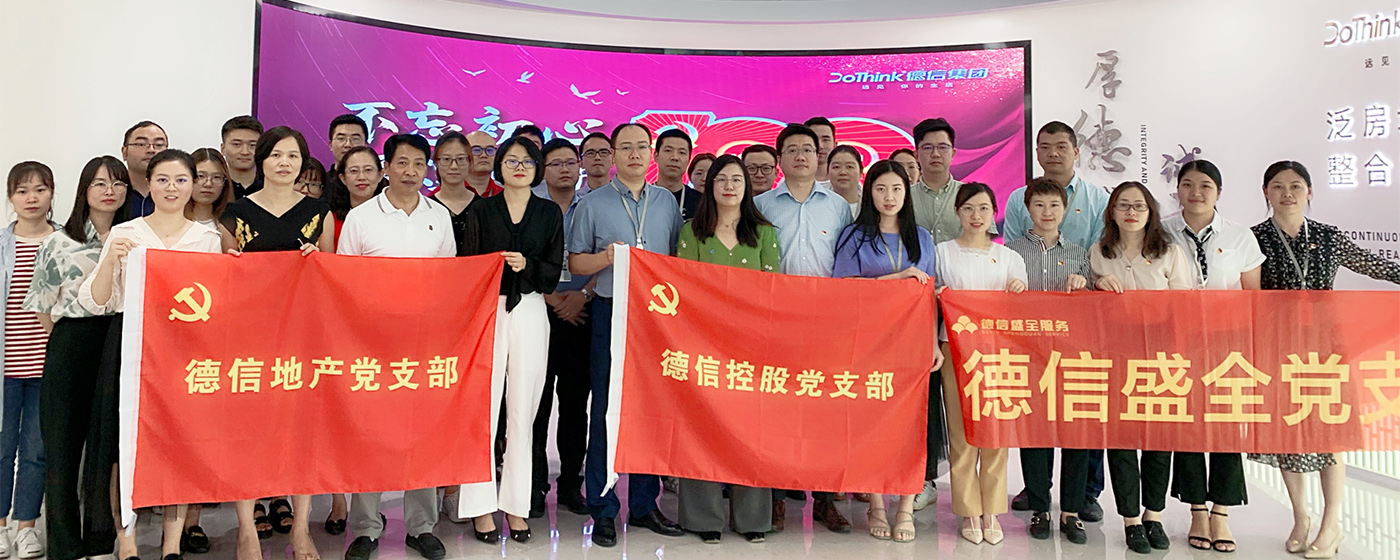 德信控股集團(tuán)有限公司 黨支部成立于 2013年9月6日,成立之初擁有正式黨員15人。2017年8月24日根據(jù)黨委指示,升級(jí)為德信控股集團(tuán)黨總支部,下設(shè)德信控 股集團(tuán)有限公司黨支部、德信地產(chǎn)集團(tuán)有限公司黨支部等三個(gè)支部,共有黨員80余人。 公司黨支部以“黨建引領(lǐng),企業(yè)發(fā)展,人才集聚,貢獻(xiàn)社會(huì)”為發(fā)展理念,按照“共 創(chuàng),共融,共享”的三共原則,采取“組織有令,企業(yè)聯(lián)動(dòng)”的方式,堅(jiān)持以轉(zhuǎn)型升 級(jí)為黨建目標(biāo),建設(shè)特色社會(huì)主義民營(yíng)企業(yè)黨支部。