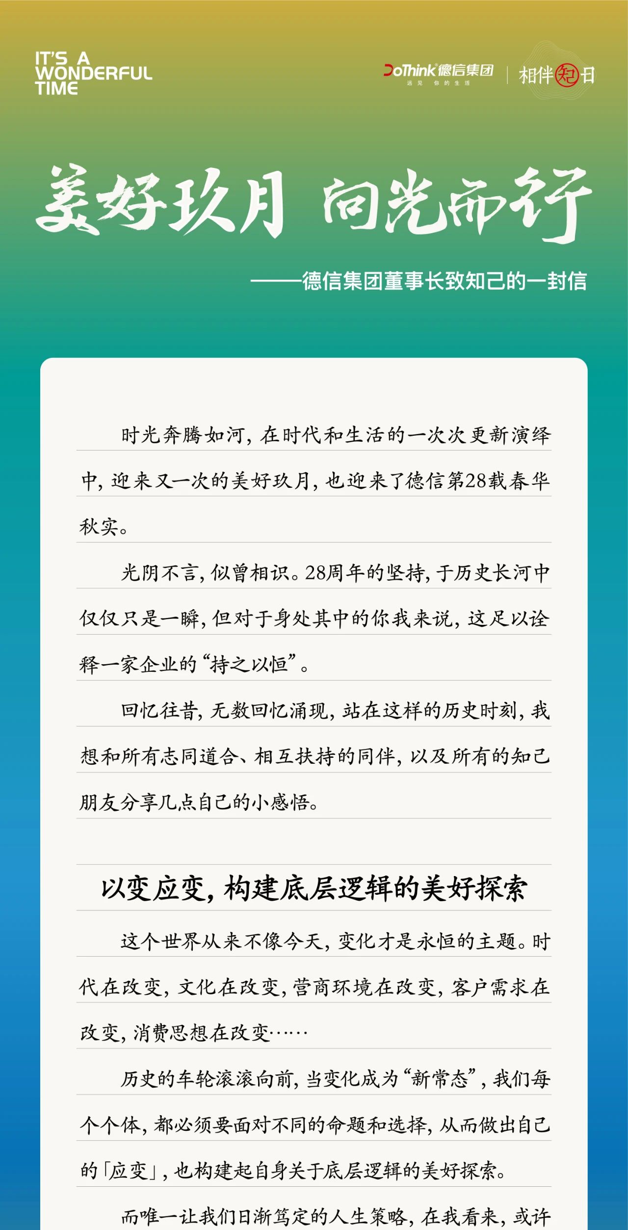 美好玖月,向光而行 | 28周年,德信集團(tuán)董事長(zhǎng)致知己的一封信