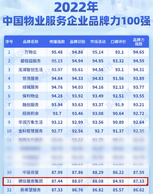 第31位!德信服務(wù)實力綻放!再獲物業(yè)服務(wù)品牌百強(qiáng)