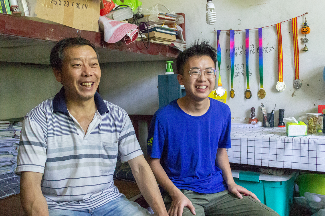 爸爸很為兒子的成長驕傲。14年前,他帶著兒子從小村到縣城打工,妻子一走就沒有再回到這個家來。這個男人又當(dāng)?shù)之?dāng)媽,在焊材廠里包裝焊絲,上著“兩班倒”的班,還學(xué)著給兒子做飯。羅序浩說:“我爸爸燒魚很好吃!”爸爸有點不好意思:“原先也不會做,熟能生巧,慢慢就練出來了。”序浩其實很心疼爸爸,學(xué)著給爸爸做過青椒炒肉:“我爸上班要兩個白班接著兩個夜班,前年干活的時候還被齒輪夾斷右手的一截手指,真的很不容易。”