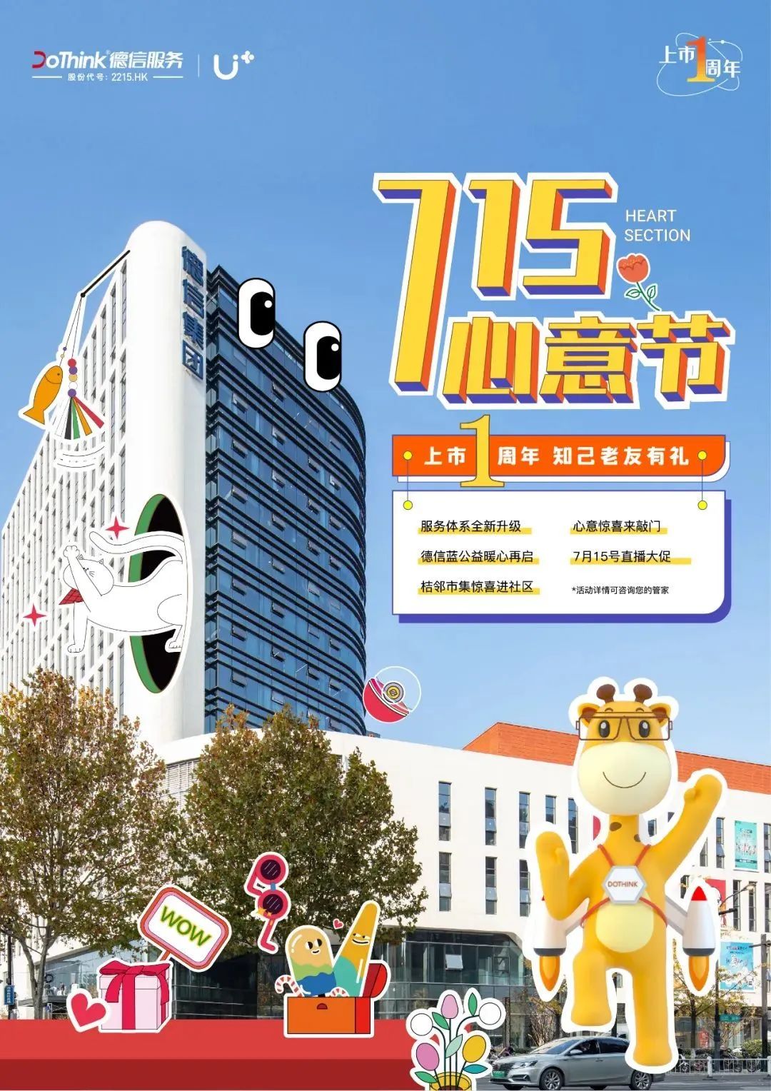 2022年7月15日,是德信服務(wù)港股上市整1周年,在這1年間,德信服務(wù)不斷細(xì)化服務(wù)體驗,拓展服務(wù)邊界,朝著未來城市生活關(guān)系服務(wù)商的愿景不斷前行。為了回饋在前行路上為德信服務(wù)不斷提供支持與幫助的廣大業(yè)主朋友,德信服務(wù)聯(lián)動德信旗下城市建設(shè)、現(xiàn)代服務(wù)、美好生活、智能科技、中外投資五大產(chǎn)業(yè)群,開展715心意節(jié)活動,為全國知己老友奉上五重心意。