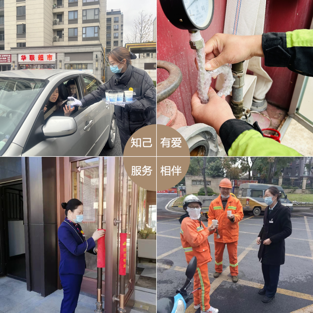 在杭州、上海、溫州等多座城市,各項目通過給業(yè)主發(fā)放熱飲、安裝門把手套、安裝設(shè)施防凍保溫套、樹木加固防凍等各類措施,溫暖守護知己。與此同時,多個項目紛紛走出園區(qū),通過給快遞小哥、外賣員、環(huán)衛(wèi)工人發(fā)放熱飲的方式,向社會傳達知己的溫暖。