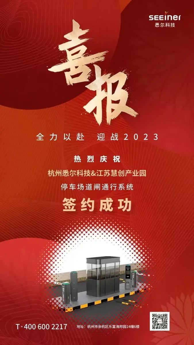 喜報(bào)!新年開門紅,悉爾科技“江蘇慧創(chuàng)產(chǎn)業(yè)園停車場一道閘通行系統(tǒng)”簽約成功