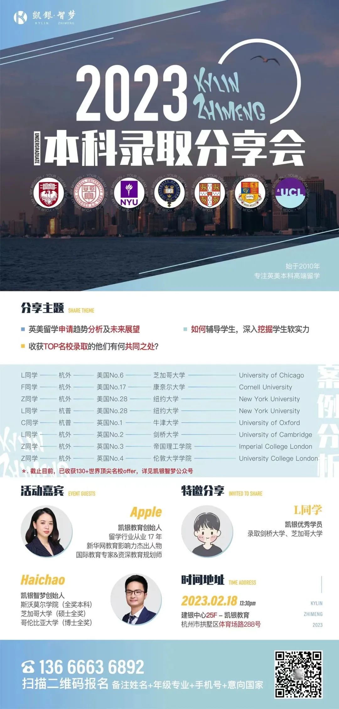 2023凱銀智夢(mèng)本科錄取分享會(huì)重磅來(lái)襲!