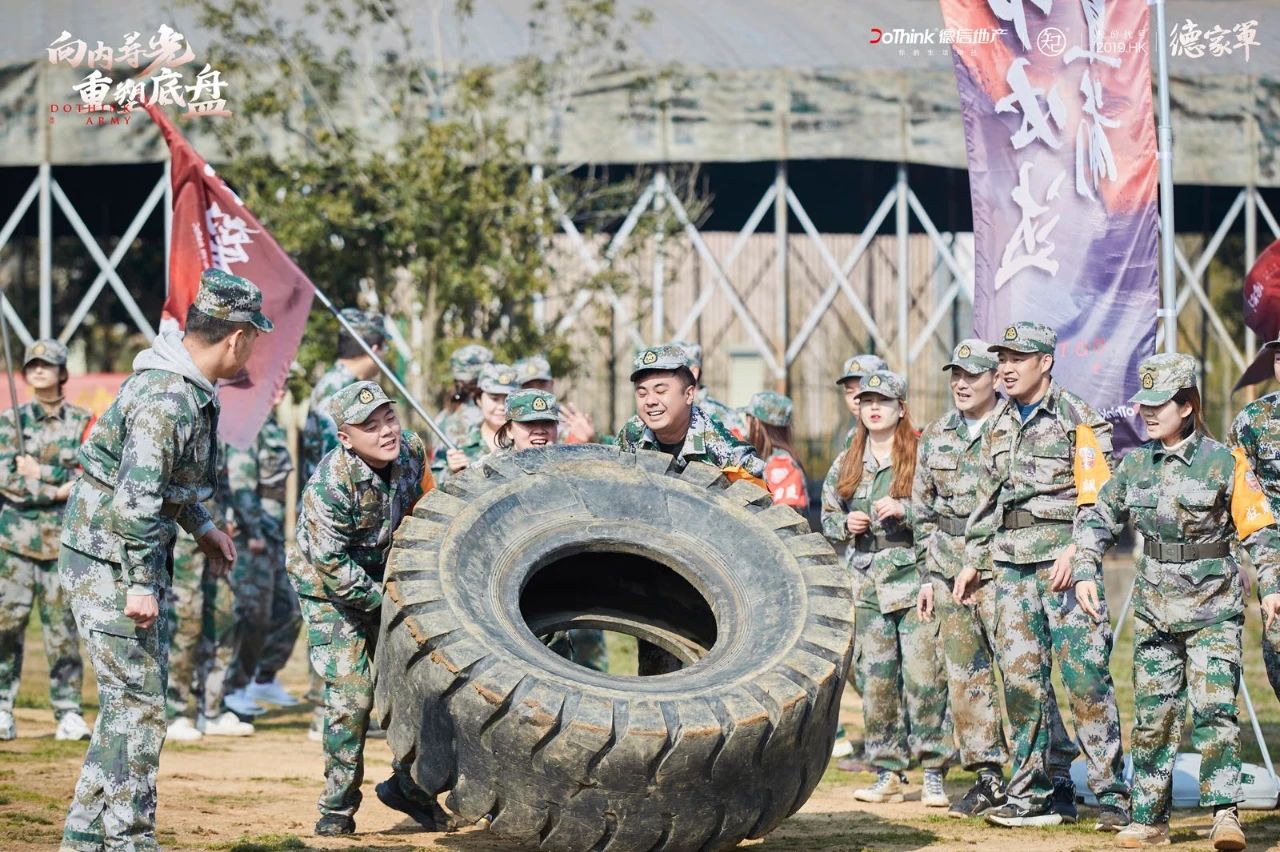 在“死亡爬行”、“翻滾輪胎”環(huán)節(jié),各個團隊的德家軍們?nèi)ζ床?,將團隊精神發(fā)揮到了極致。