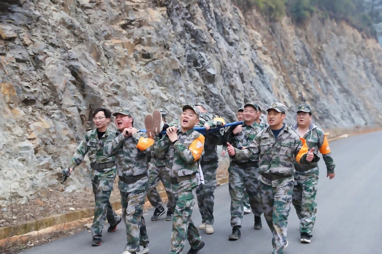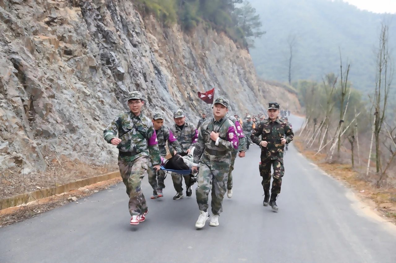 徒步6公里競走拉練,在過程中需要完成“擔架抬行”的任務,需團隊全員到齊才算完成任務,充分發(fā)揮了德家軍“困必奮力相救”的德家軍精神。