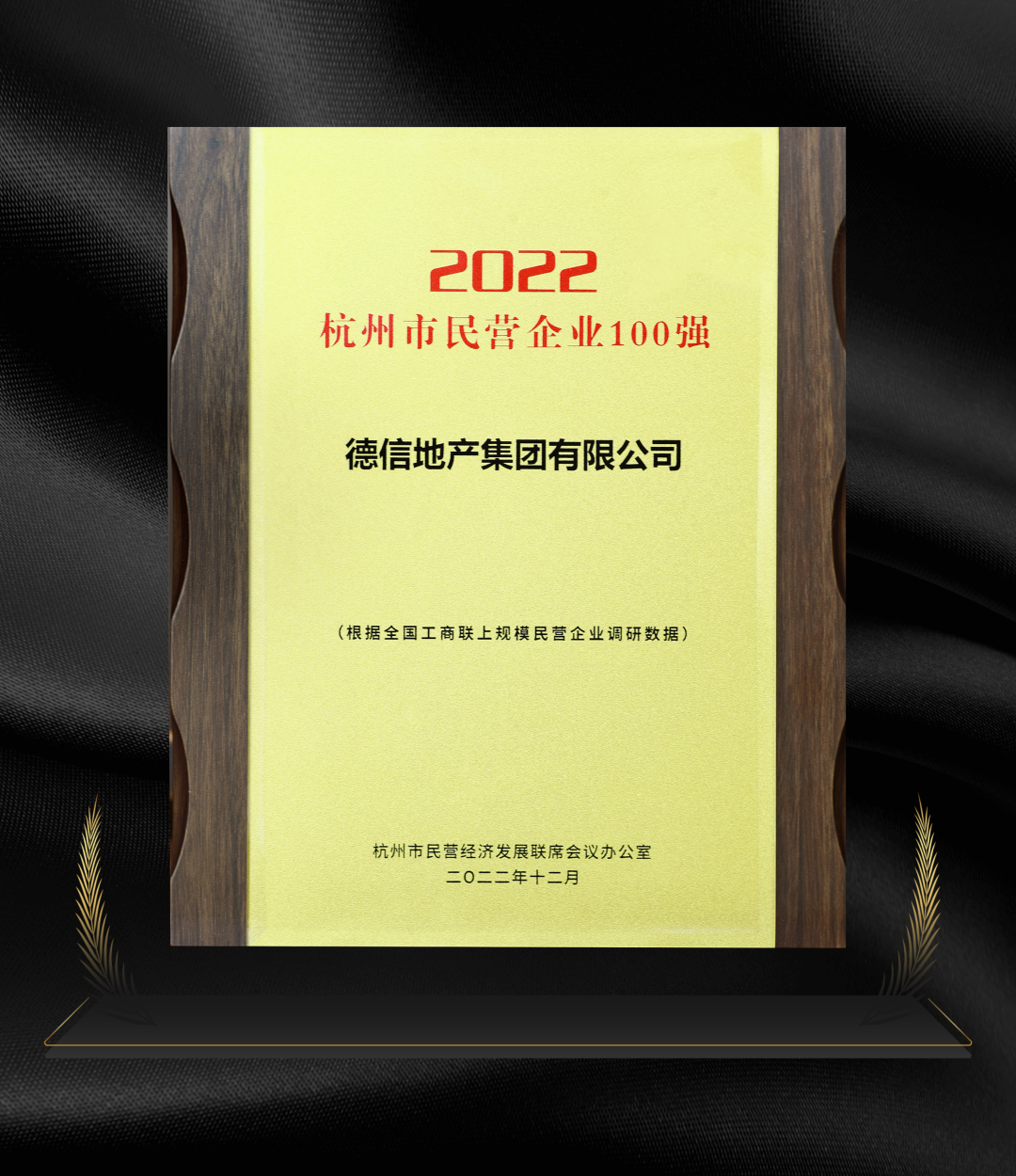 喜訊!德信地產(chǎn)集團入選“2022杭州市民營企業(yè)百強榜單”