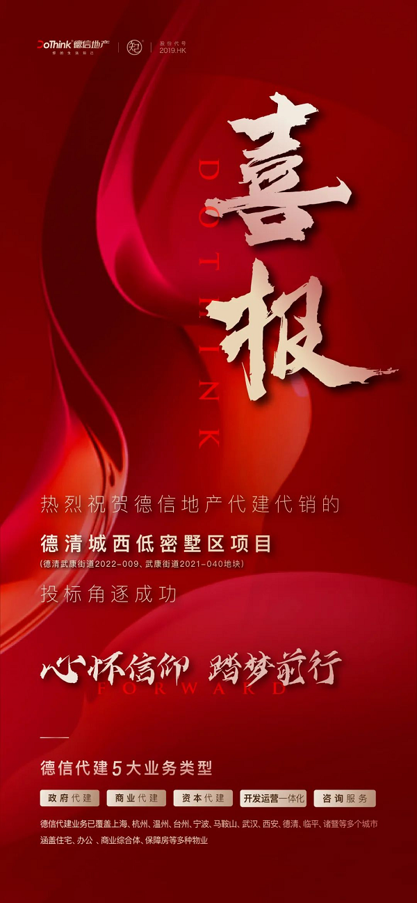 喜報(bào):恭賀德信地產(chǎn)代建代銷的德清城西低密墅區(qū)項(xiàng)目投標(biāo)角逐成功,心懷信仰,踏夢前行